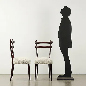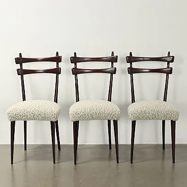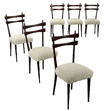 6 Sedie in faggio tinto con seduta in boucle nuova, Anni '50