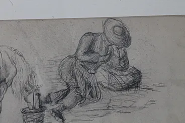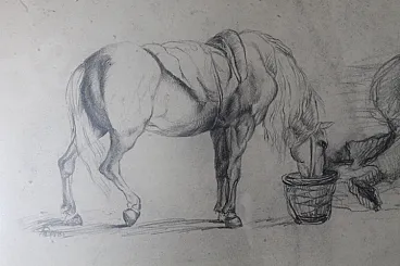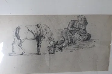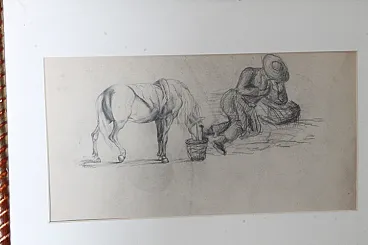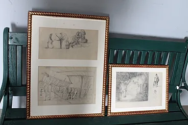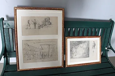 Coppia di due quadri con disegni antichi 800 a matita firmati . Mis 60