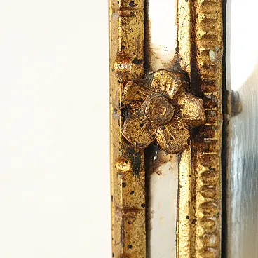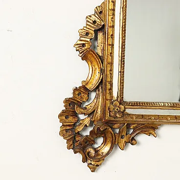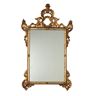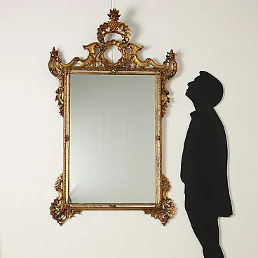 Specchiera in stile rococò metà '900 in legno intagliato con motivi rocaille e floreali, dorato a vernice.