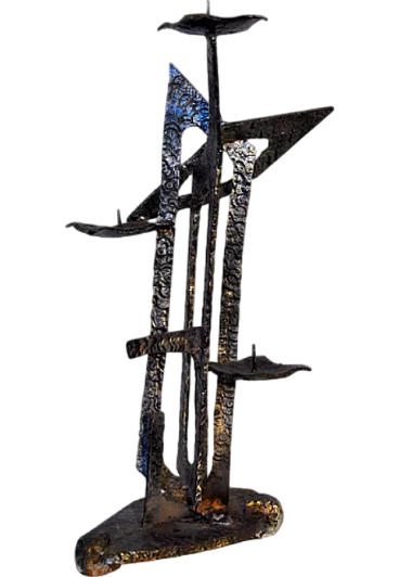 La colonna centrale è caratterizzata da una base cesellata a motivo fogliaceo e un capitello con portacera superiore.