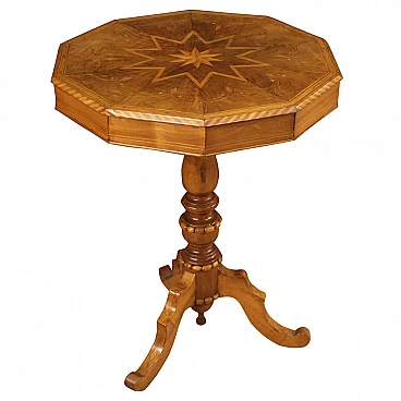 Tavolino italiano intarsiato in noce e acero del XIX secolo