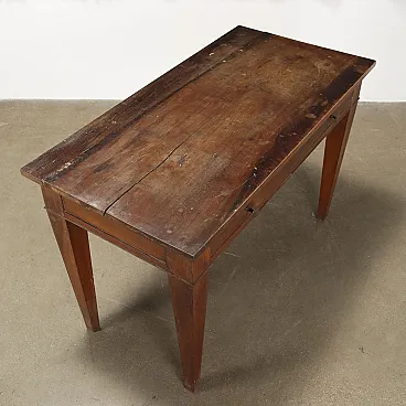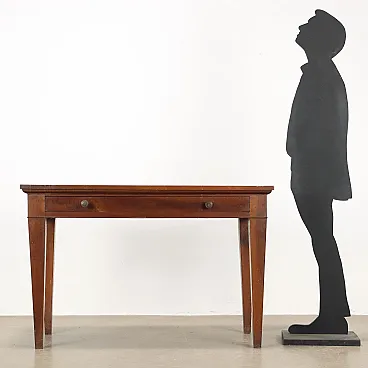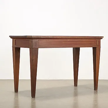 Tavolo scrittoio Direttorio in noce cassetto nella fascia sottopiano, gambe tronco piramidali. Italia, fine XVIII Secolo.