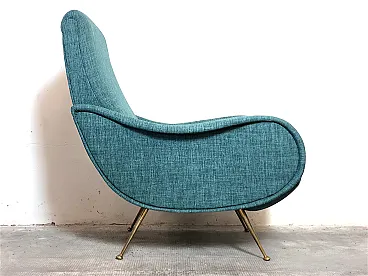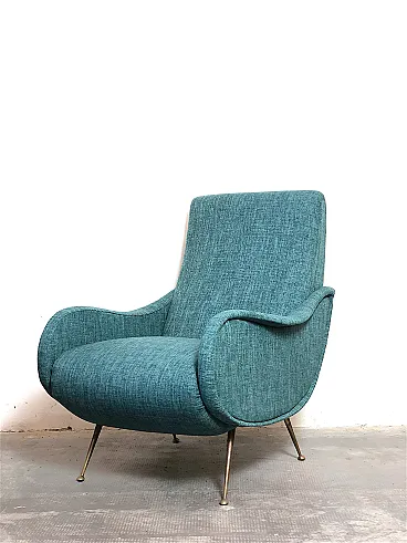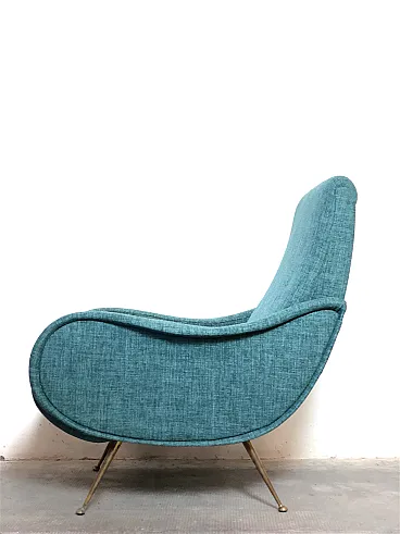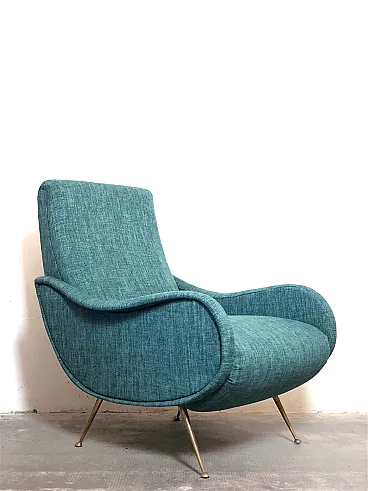 Poltrona "LADY" Anni 50 Design attribuito a MARCO ZANUSO capolavoro del made in Italy, Lady è stata premiata con la Medaglia d’Oro alla IX Triennale di Milano del 1951. La Poltrona è di manifattura Italiana ,completamente restaurata con rivestimento e interni nuovi,tessuto in cotone di colore Sky Blue,inconfondibile style della scocca del Designer Marco ZANUSO ,piedi in Ottone con il tipico Design degli anni 50. CONDIZIONI PERFETTE Misure Altezza cm 90/Larghezza cm 67/Profondità cm 90/Altezza seduta cm 40/ Seduta cm 50 X cm 50