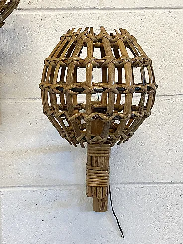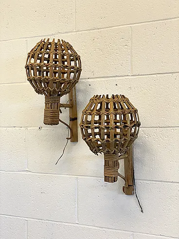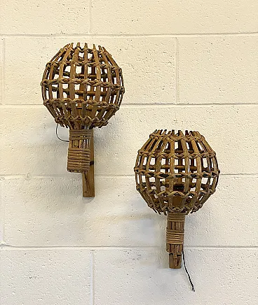 Coppia di appliques in giunco e bambù, anni '70
