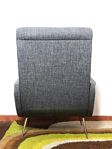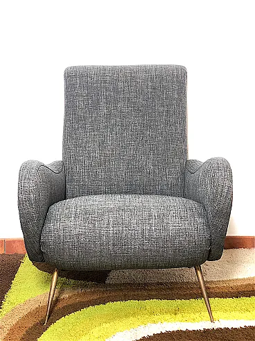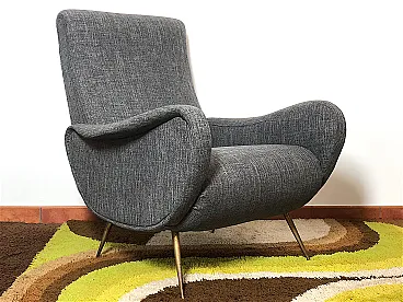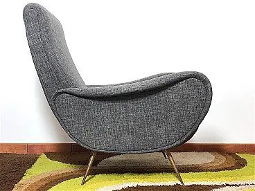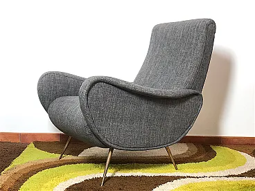 Poltrona "LADY" Anni 50 Design attribuito a MARCO ZANUSO capolavoro del made in Italy, Lady è stata premiata con la Medaglia d’Oro alla IX Triennale di Milano del 1951. La Poltrona è di manifattura Italiana ,completamente restaurata con rivestimento e interni nuovi,tessuto di cotone nel colore Light Grey,inconfondibile style della scocca del Designer Marco ZANUSO ,piedi in Ottone con il tipico Design degli anni 50. CONDIZIONI PERFETTE Misure Altezza cm 90/Larghezza cm 67/Profondità cm 90/Altezza seduta cm 40/ Seduta cm 50 X cm 50