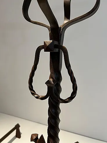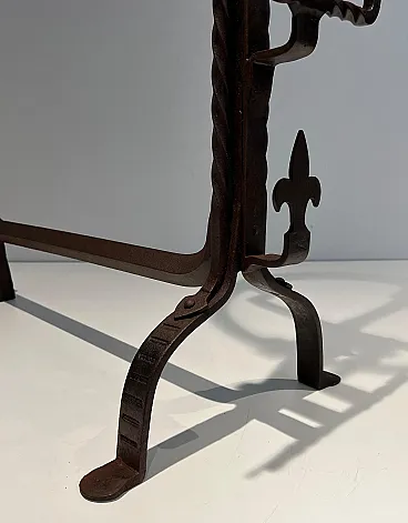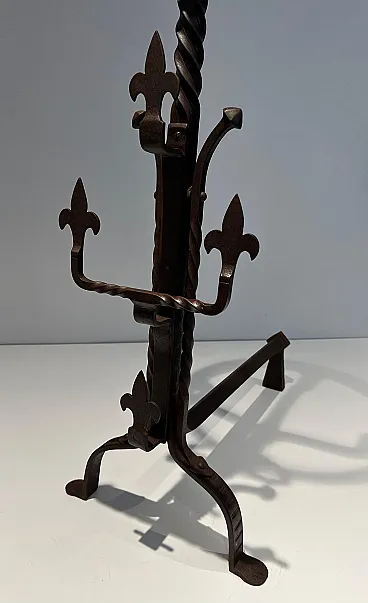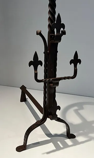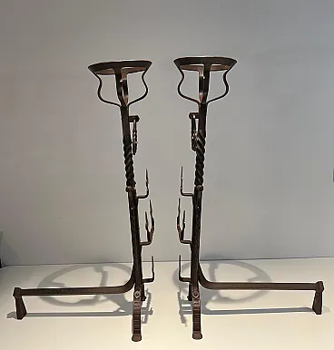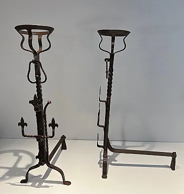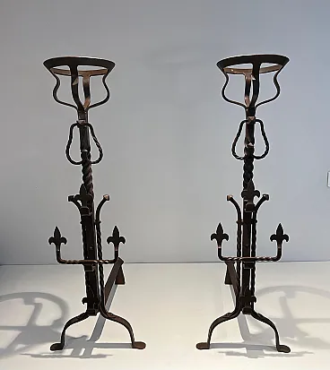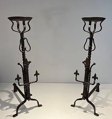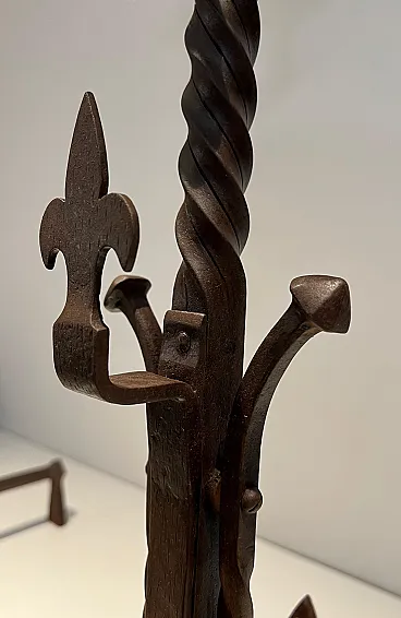 Coppia di landiere in ferro battuto in stile gotico, '900