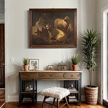 Rosa da Tivoli, attr., Paesaggio bucolico con capre, '600