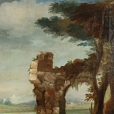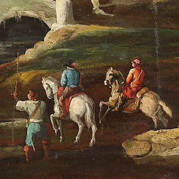 Paesaggio con Cavalieri e Rovine, olio su tela, '700