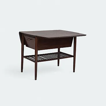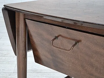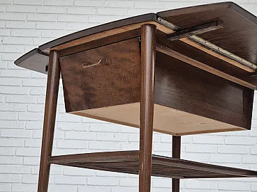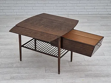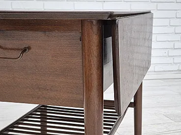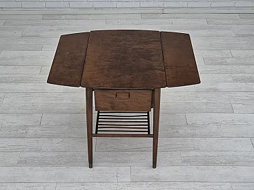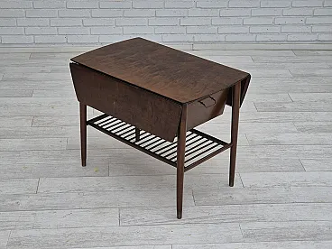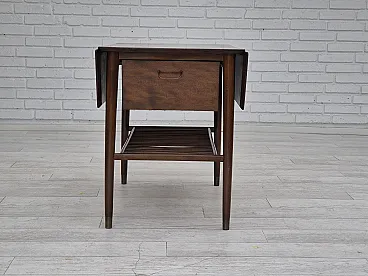 Tavolino pieghevole danese con cassetto e ripiano, anni '70