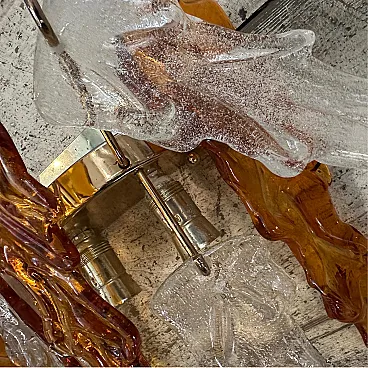 Coppia di applique in ottone e vetro di Murano di Mazzega, anni '70