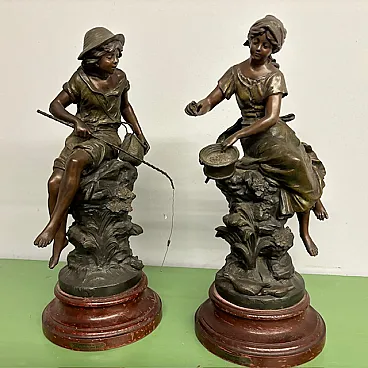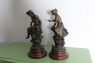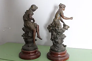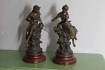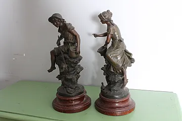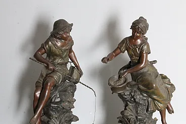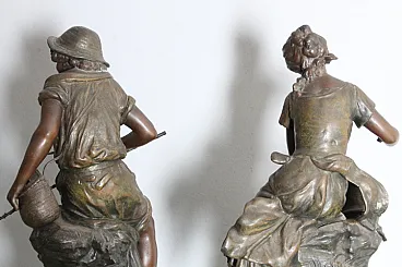 Coppia di sculture Auguste Moreau in antimonio patinato, fine '800