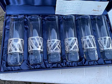6 Bicchieri in cristallo con fascia in argento 925, fine '900
