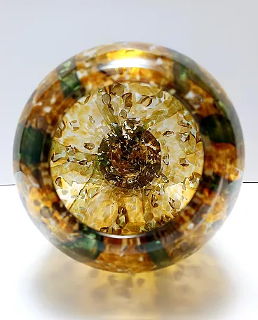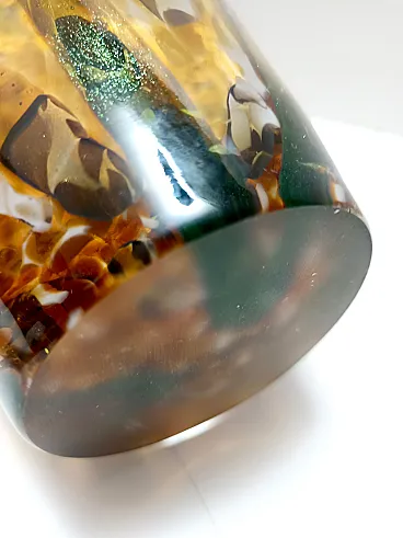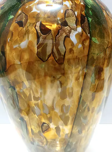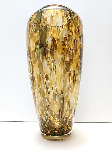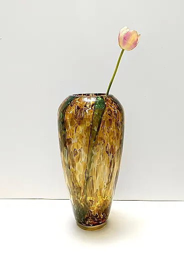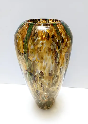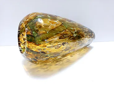 Grande vaso in vetro di Murano giallo e verde attr. a Fratelli Toso con avventurina