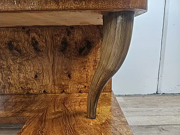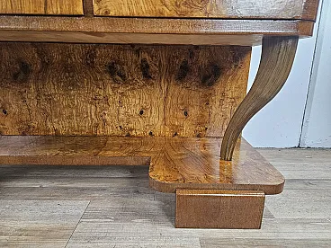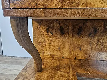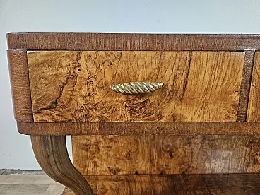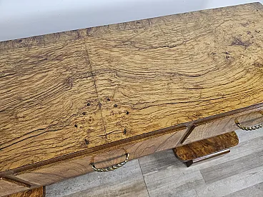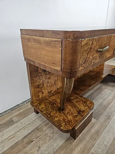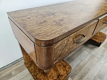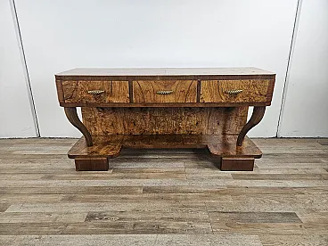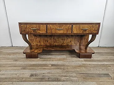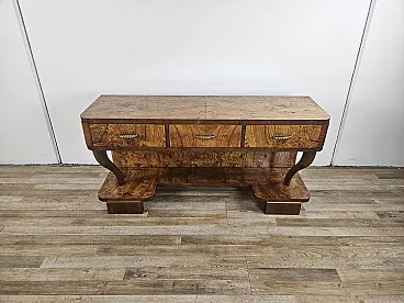 Consolle Art Decò in radica di noce con 3 cassetti, anni '30
