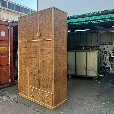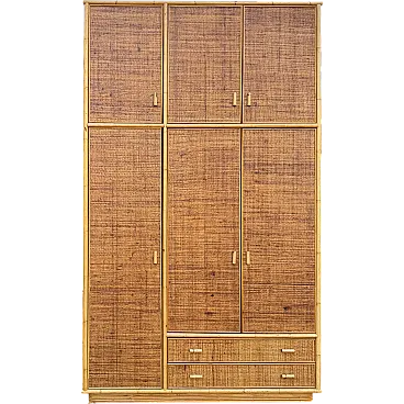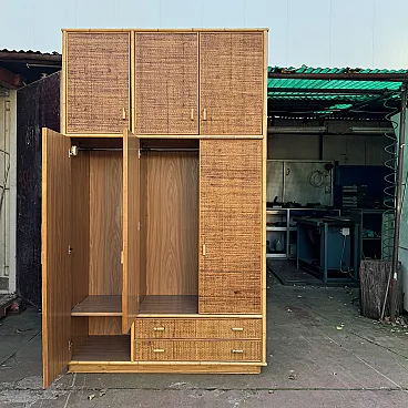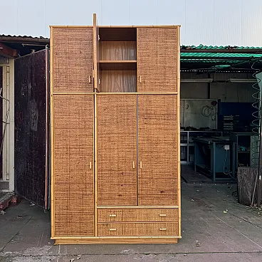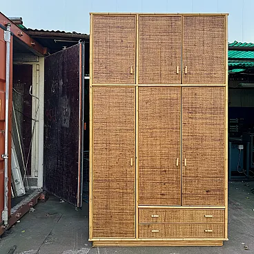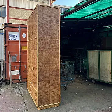 Grande armadio in vimini e bamboo, anni '70