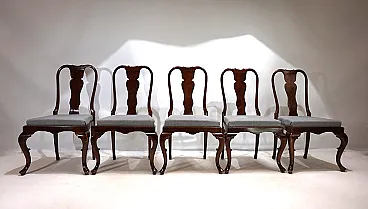 5 Sedie da pranzo Queen Anne in mogano, anni '20