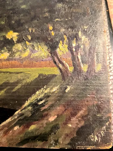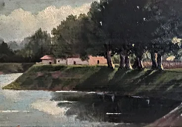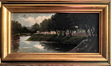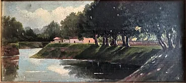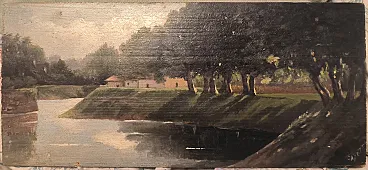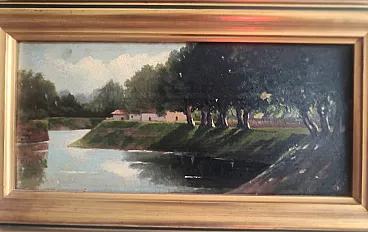 "PAESAGGIO FLUVIALE" firma: CARETTI olio su tavola, '800