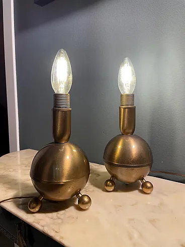 Coppia lampade pair lamps brass ottone Art Deco, 60s 1