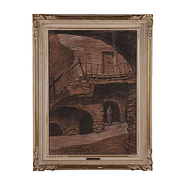Pastelli su cartone. Firmato e datato in basso; al retro è presente cartiglio della Galleria d'Arte Moderna di Verona, che mise in asta benefica numerose opere dell'artista di sua proprietà. All'opera è allegata la fattura di acquisto a tale asta del 1951, con il titolo dell'opera.
