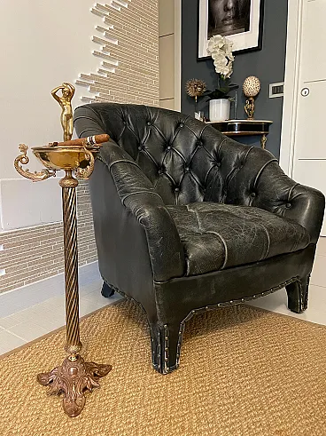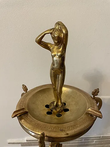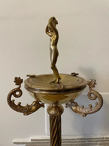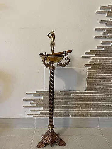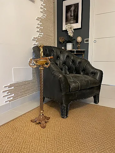 Posacenere in ottone vintage, realizzato in Italia, emblema dell'artigianato d'eccellenza. Questo elegante accessorio presenta un design raffinato con dettagli ricercati, tipici degli oggetti decorativi degli anni '50 e '60. L'ottone, con la sua finitura lucida e patina naturale del tempo, conferisce un fascino nostalgico e sofisticato. Ideale come elemento di arredo per ambienti dal gusto retrò o per collezionisti di oggetti dal fascino senza tempo, unisce funzionalità e stile in un perfetto equilibrio tra design e tradizione artigianale italiana.