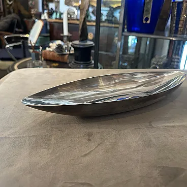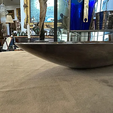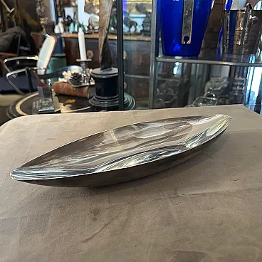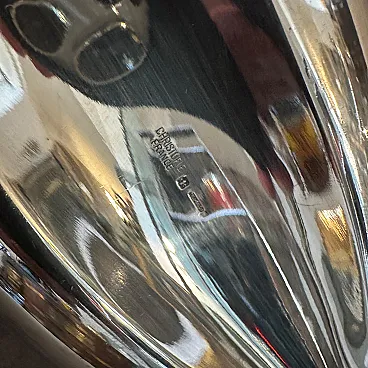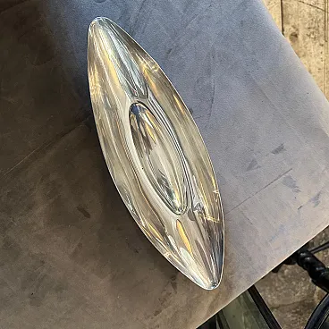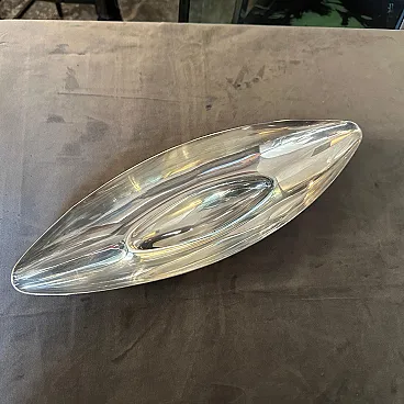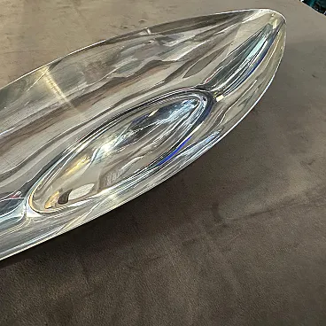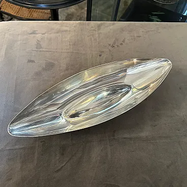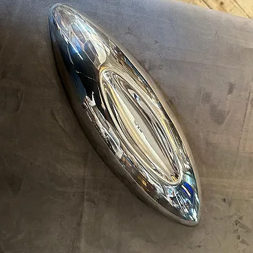 Una ciotola ovale placcata in argento di alta qualità disegnata da Lino Sabattini, realizzata in Francia da Christofle, produttore di fama mondiale negli anni Sessanta. Si tratta di un pezzo iconico del famoso designer italiano Lino Sabattini. La ciotola è un esempio lampante di design moderno della metà del secolo e di sapiente artigianato. Disegnata da Lino Sabattini, un acclamato designer italiano, e prodotta da Christofle, un rinomato produttore di argenteria francese, questa ciotola ovale mostra la fusione tra la sensibilità del design italiano e l'esperienza francese nella lavorazione dell'argento. La forma della ciotola è elegantemente allungata, con una silhouette ovale liscia e fluida che si assottiglia alle estremità. Emana un senso di modernità e raffinatezza, è in ottime condizioni vintage.