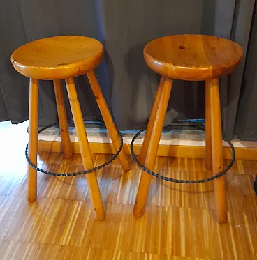 Coppia sgabelli in massello di legno nello stile di Charlotte Perriand 47
