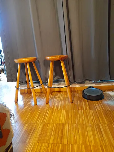 Coppia sgabelli in massello di legno nello stile di Charlotte Perriand 2