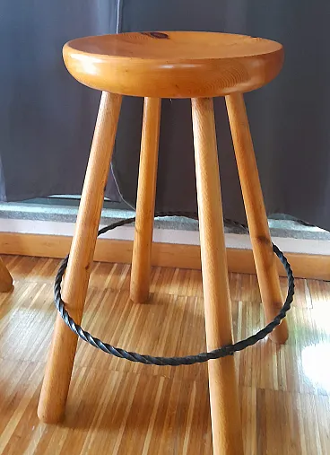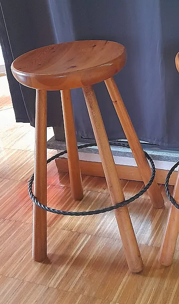 Coppia sgabelli in massello di legno nello stile di Charlotte Perriand 6