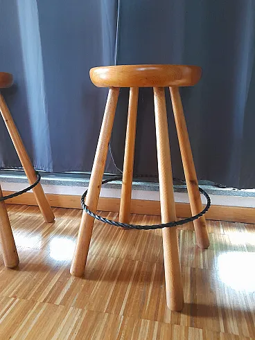 Coppia sgabelli in massello di legno nello stile di Charlotte Perriand 5