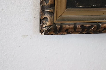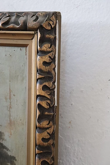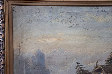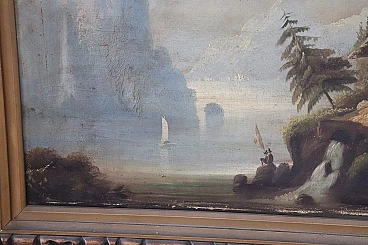 Antico quadro olio su tela con cornice di paesaggio lacustre '800, sec XIX