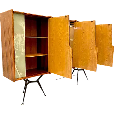 Questa rara e squisita credenza moderna italiana di metà secolo, realizzata tra la fine degli anni '50 e l'inizio degli anni '60, presenta una sorprendente combinazione di materiali di prima qualità e design sofisticato. Caratterizzata da una struttura in legno massello di palissandro e ante impiallacciate in palissandro di alta qualità, è elegantemente abbinata a distintivi pannelli in vetro effetto marmo. La credenza poggia con grazia su raffinate gambe in acciaio a forma di ragno, aggiungendo un tocco di fascino modernista alla sua silhouette senza tempo.