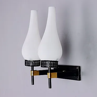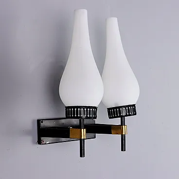 Lampada da parete in metallo e ottone, anni '60