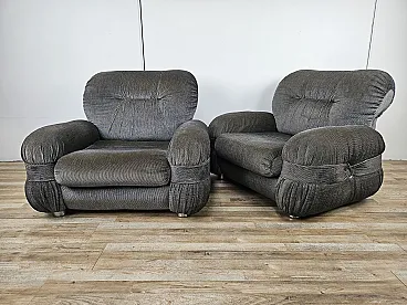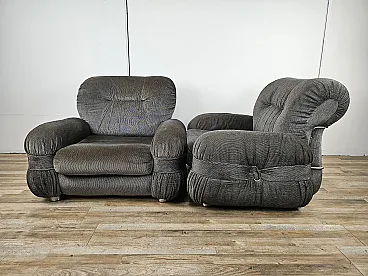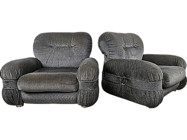 Coppia di grandi poltrone in stoffa e metallo con cinghie, anni '70