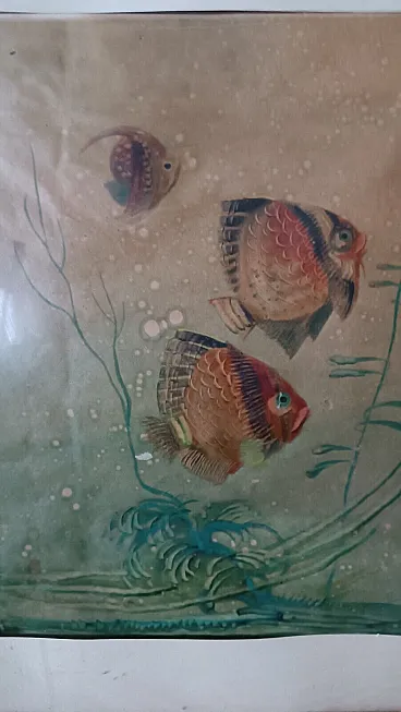 Pesci di Silvio Polloni, quadro tecnico misto, anni '20