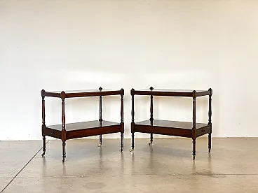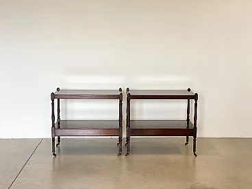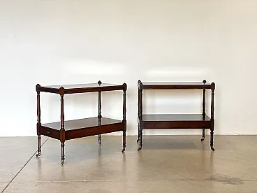 Coppia di tavolini o comodini a due piani in mogano, anni '60