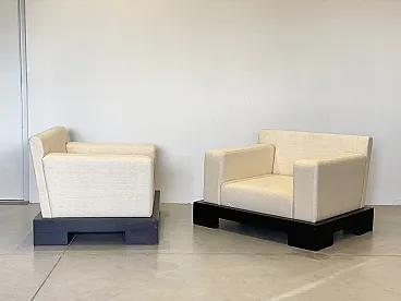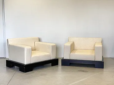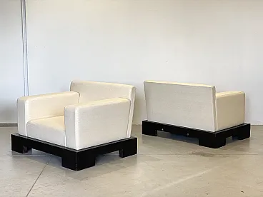 Coppia di poltrone in legno di teak e tessuto, anni '90