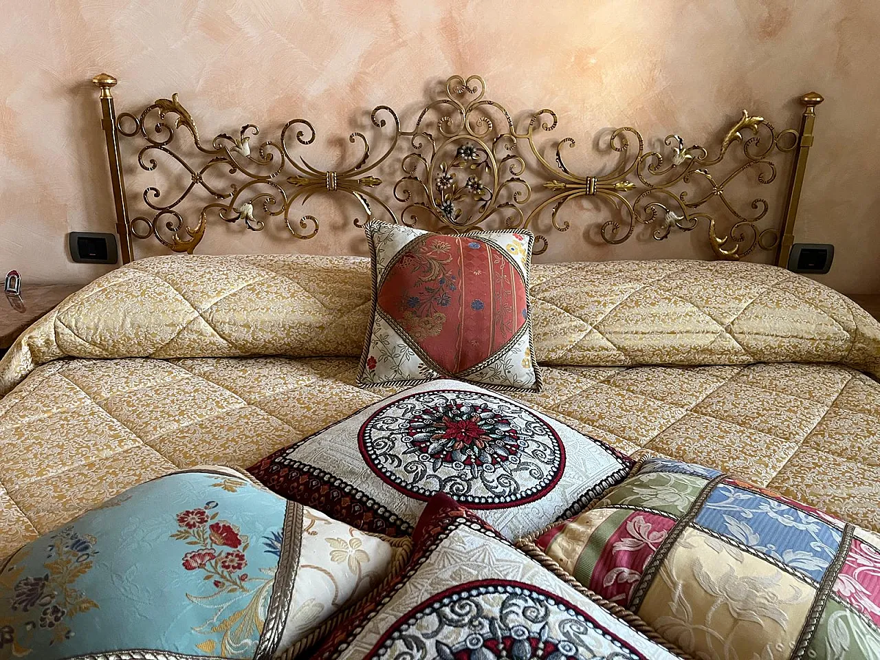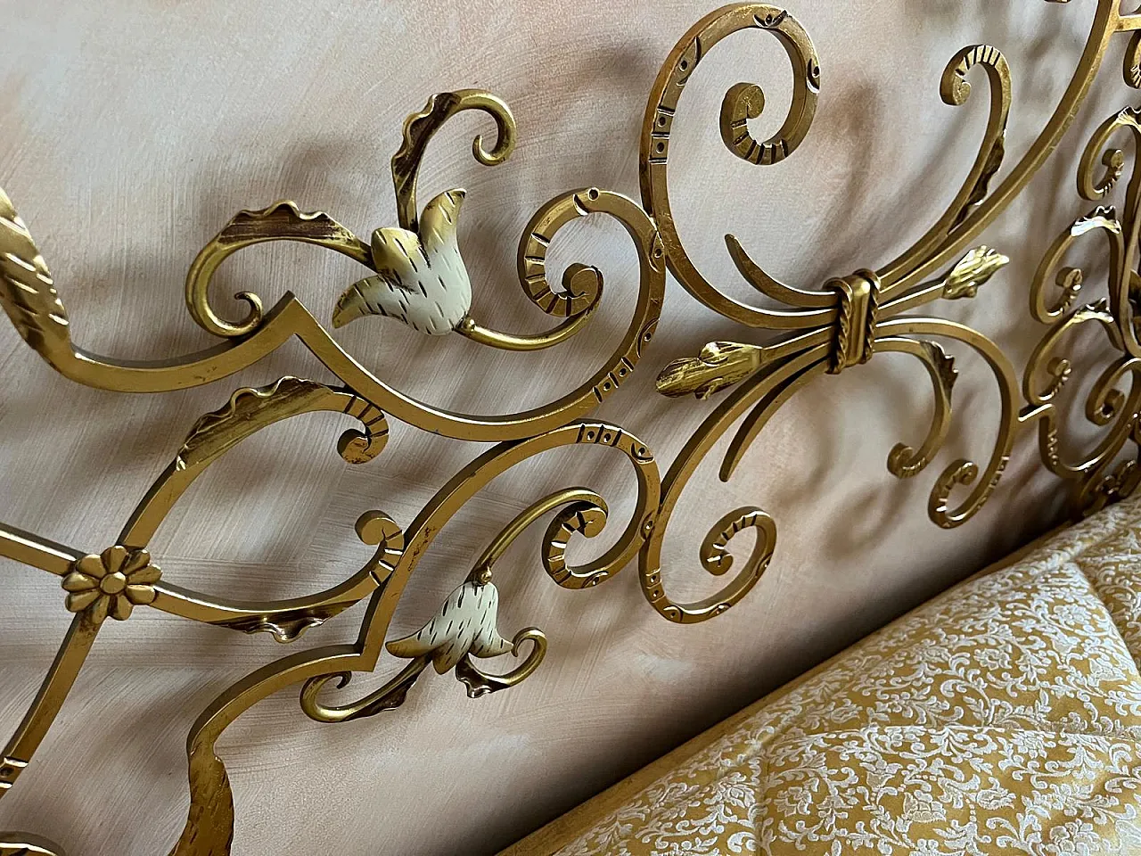 Testiera letto in ferro battuto oro, anni '80