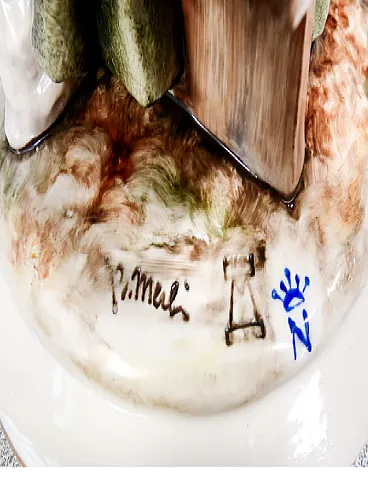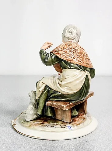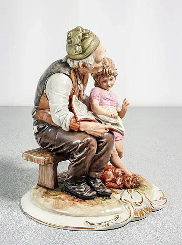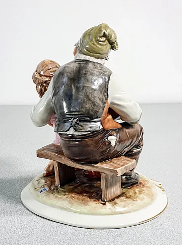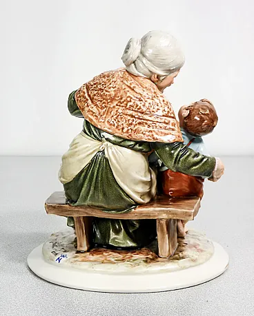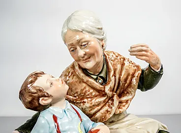 Nonni e nipoti, coppia di sculture in ceramica di B. Merli, tardo '900