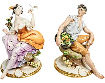 Contadini, coppia di sculture in porcellana di G. Cappé, anni '50