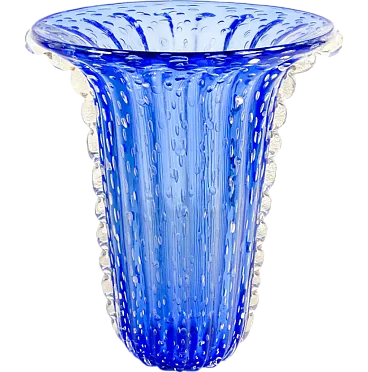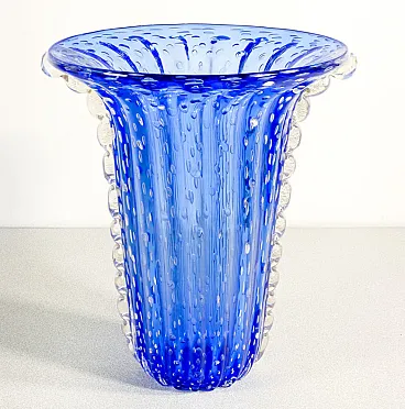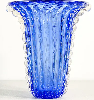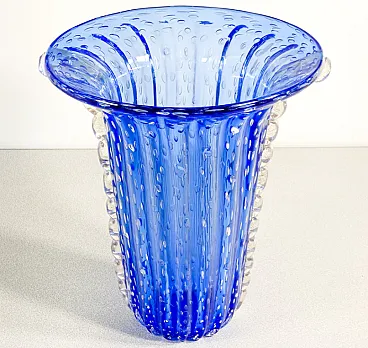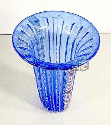 Vaso in vetro soffiato di Murano blu di Toso, fine '900
