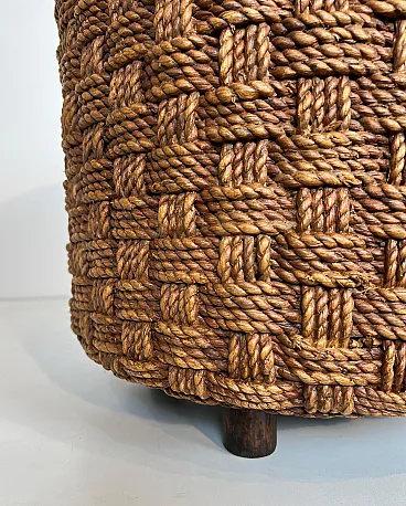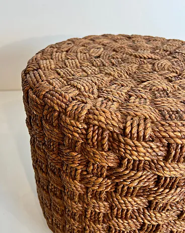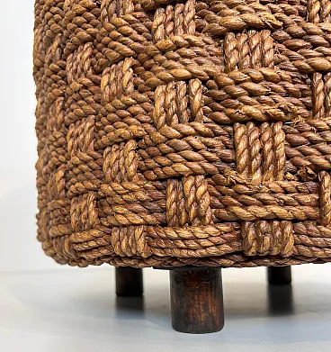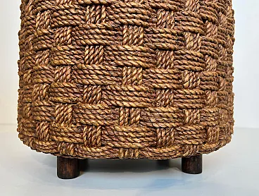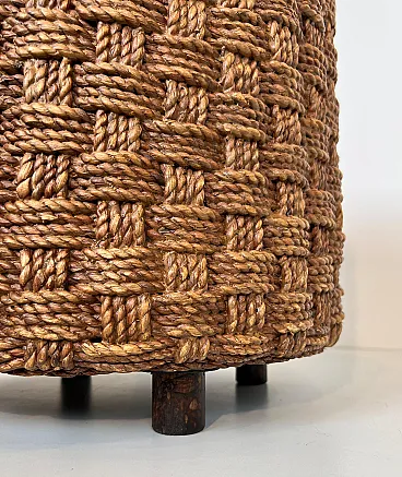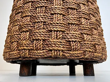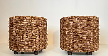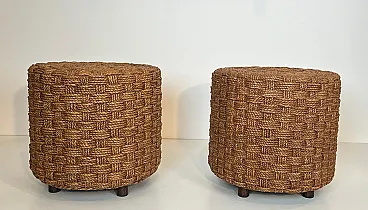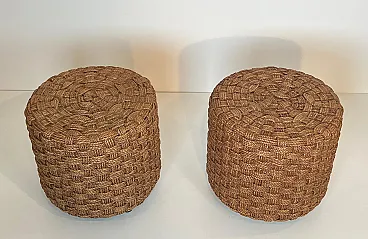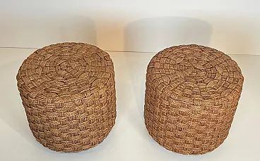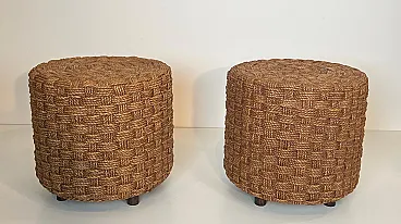Coppia di sgabelli in corda con piedi rotondi in legno, anni '70