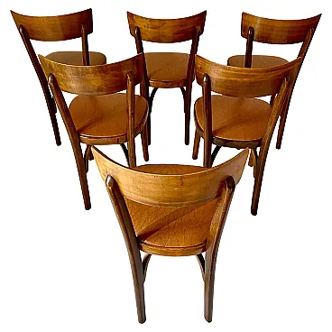 Sedie da bistrot in massello di faggio, set da sei, Italia 1950