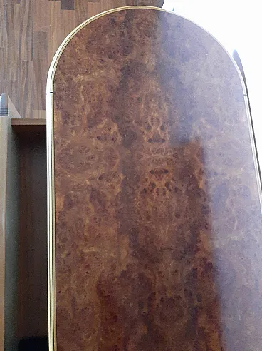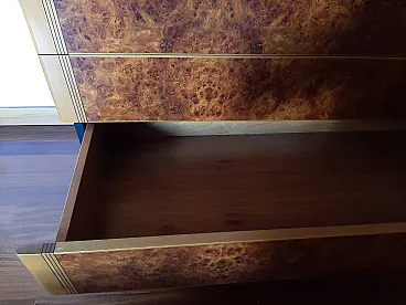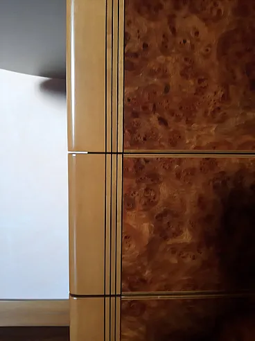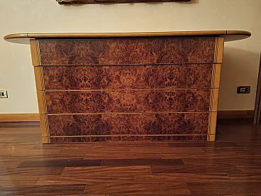 La cassettiera della collezione 'Artona' è stata disegnata da Afra & Tobia Scarpa e prodotta da Maxalto, intorno al 1975, è un mobile classico e dall'elegante semplicità e l'impeccabile maestria di questo iconico duo del design italiano. Una caratteristica esemplare della toilette "Artona" è la sua grande attenzione ai dettagli. I quattro cassetti sono perfettamente integrati nella struttura, con bordi lisci e precisi e linee pulite che creano un senso di equilibrio e armonia. Il frontale senza giunture esalta ulteriormente la bellezza della ricca radica di noce e mette in mostra le sue drammatiche venature naturali che si trovano al centro del pezzo e creano un punto focale visivo. Si tratta di un pezzo versatile che si adatta bene a diversi ambienti e stili di interni, dalla sala da pranzo al soggiorno, dalla camera da letto all'ufficio. Si tratta di un pezzo raro e ambito dagli appassionati di design e dai collezionisti. La collezione "Artona" era la linea di alta qualità prodotta da Maxalto, la divisione specializzata di B&B Italia che si concentrava esclusivamente sulla produzione di mobili artigianali.