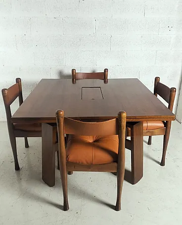 Extendable walnut dining table 612 mod. by S.Coppola for Bernini 60/70 1