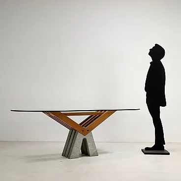 Tavolo ovale moderno in legno, granito e vetro, anni 2000