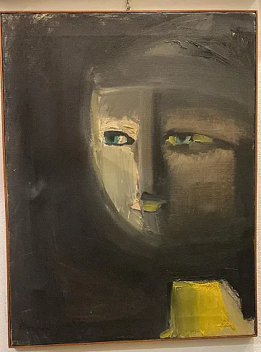Quadro testa a tecnica mista, anni '70