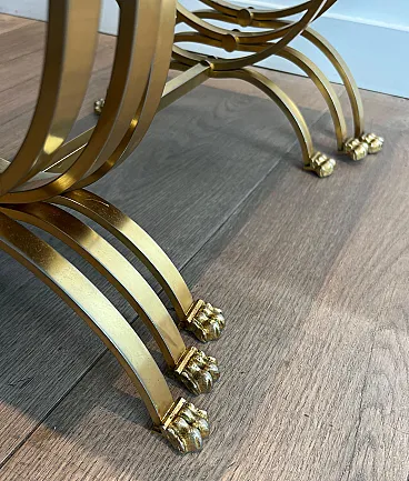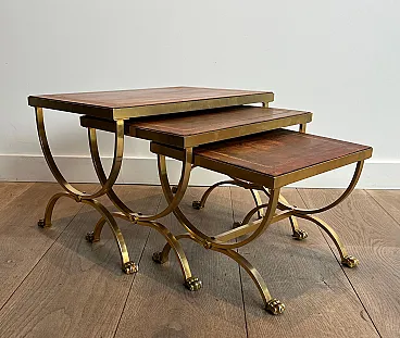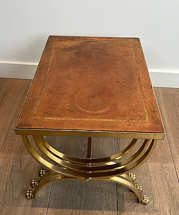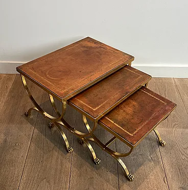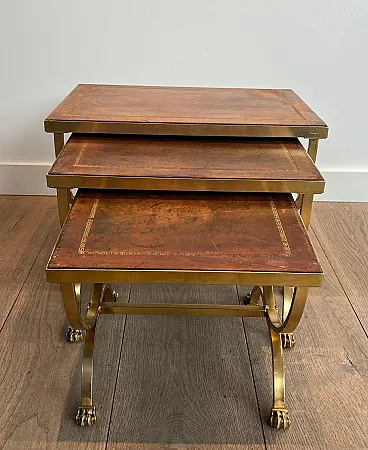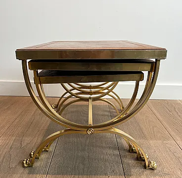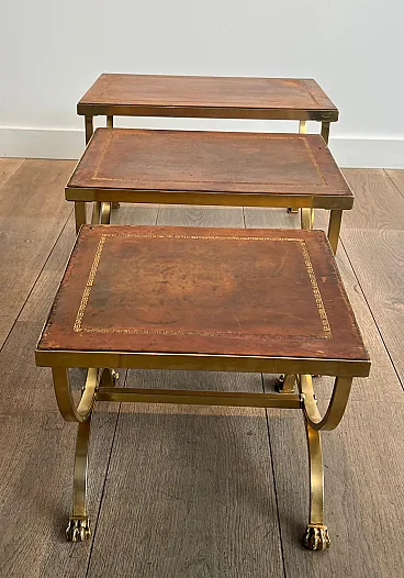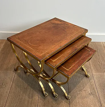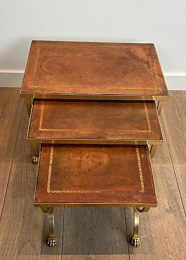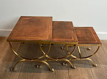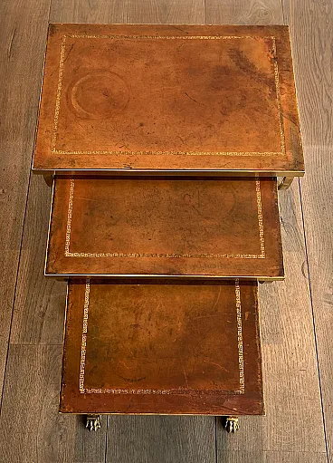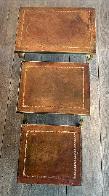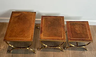 3 Tavolini da salotto in metallo e pelle di Maison Jansen, anni '40