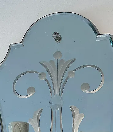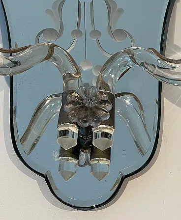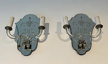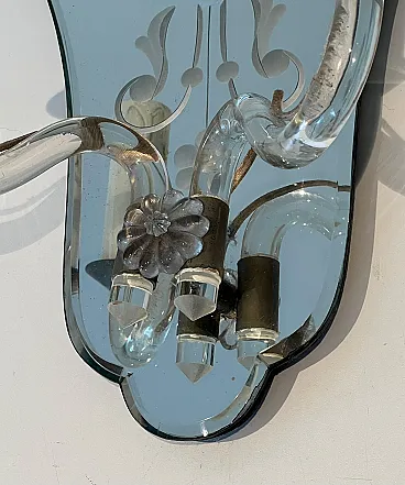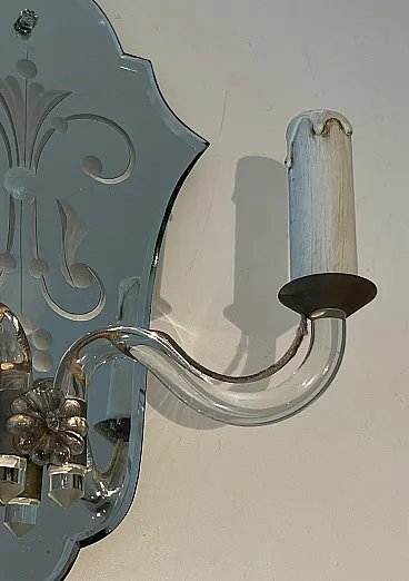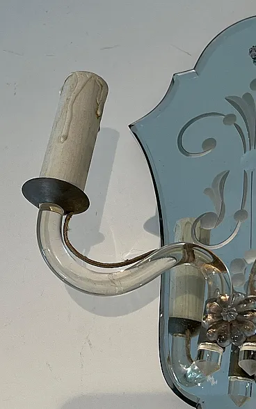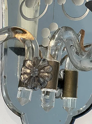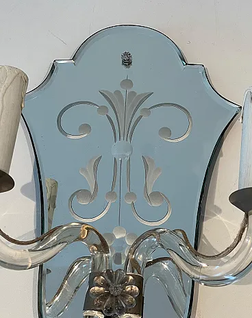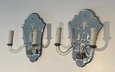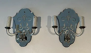 Coppia di appliques Murano in specchio, cristallo e metallo, anni '40