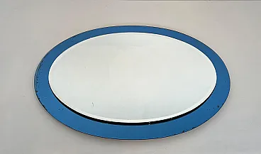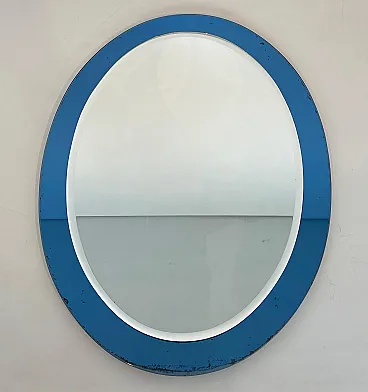 Specchio ovale con bordo bluastro di Fontana Arte, anni '70