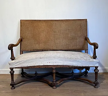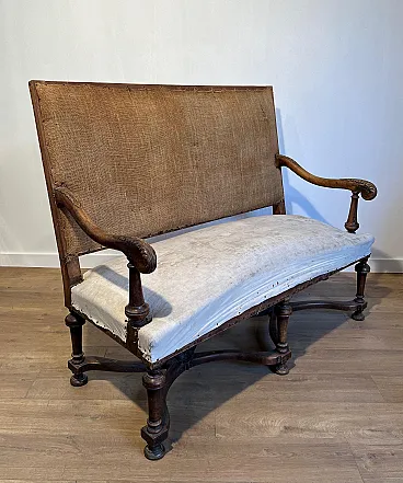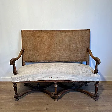 Divano con schienale alto in noce in stile Luigi XIII, fine '800